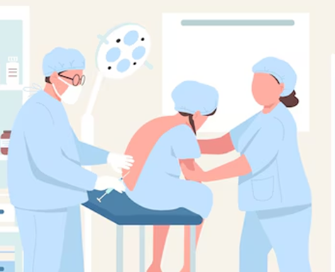 – Preparation: You will be positioned, often sitting up or lying on your side. To facilitate the puncture, you must round your back to open the vertebrae and allow the needle to be inserted.
